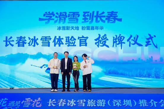 长春市文广旅局副局长金勇为大湾区达人授牌“长春冰雪体验官”。